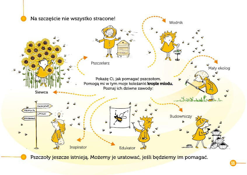 Jak pomagać pszczołom? To pytanie, na które odpowiedź tylko z pozoru wydaje się dość prosta. Zatrzymaj się jednak na chwilę i wymień 5 sposobów jak możesz pomóc pszczole? A teraz wyobraź sobie, że tych sposobów jest znacznie więcej. Możesz się o nich dowiedzieć z książki Misja pszczoła, której główną bohaterką jest Kropla miodu. Z pomocą swoich koleżanek uczy o tym, co można zrobić, żeby pszczołom żyło się lepiej.