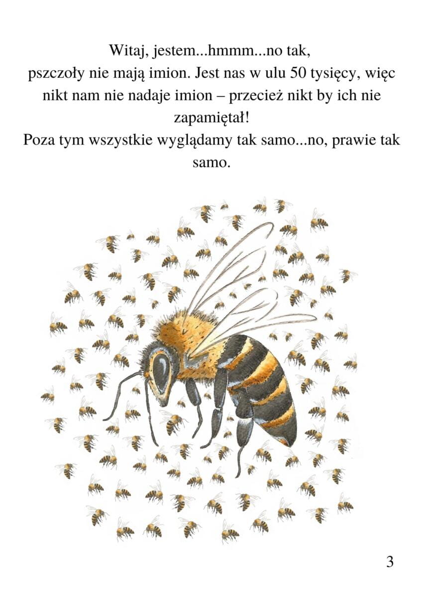 Bajka o pszczołach "W imieniu pszczół" to historia pszczoły robotnicy, która opowiada o swojej rodzinie, tłumaczy różnice pomiędzy pszczelimi chłopakami a dziewczynami, wyjaśnia kim jest królowa i na czym polega jej praca.
