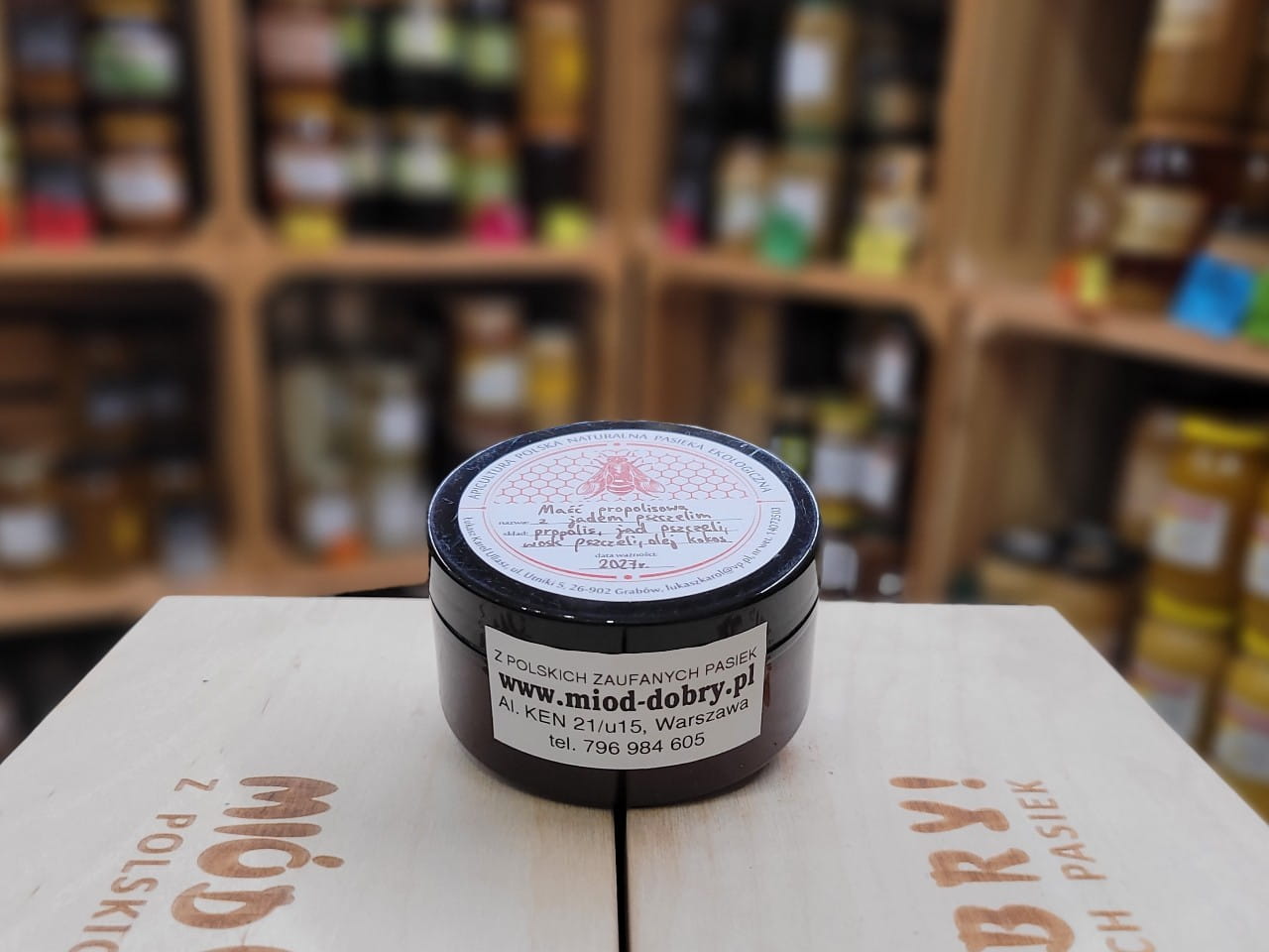Maść propolisowa działa przeciwbakteryjnie, ochronne i regenerująco. Ta maść została wzbogacona o jad pszczeli, co wzmacnia jej działanie.