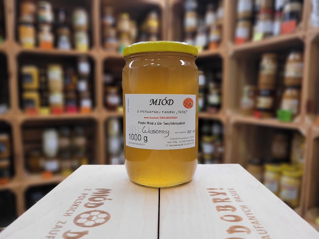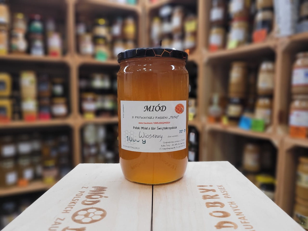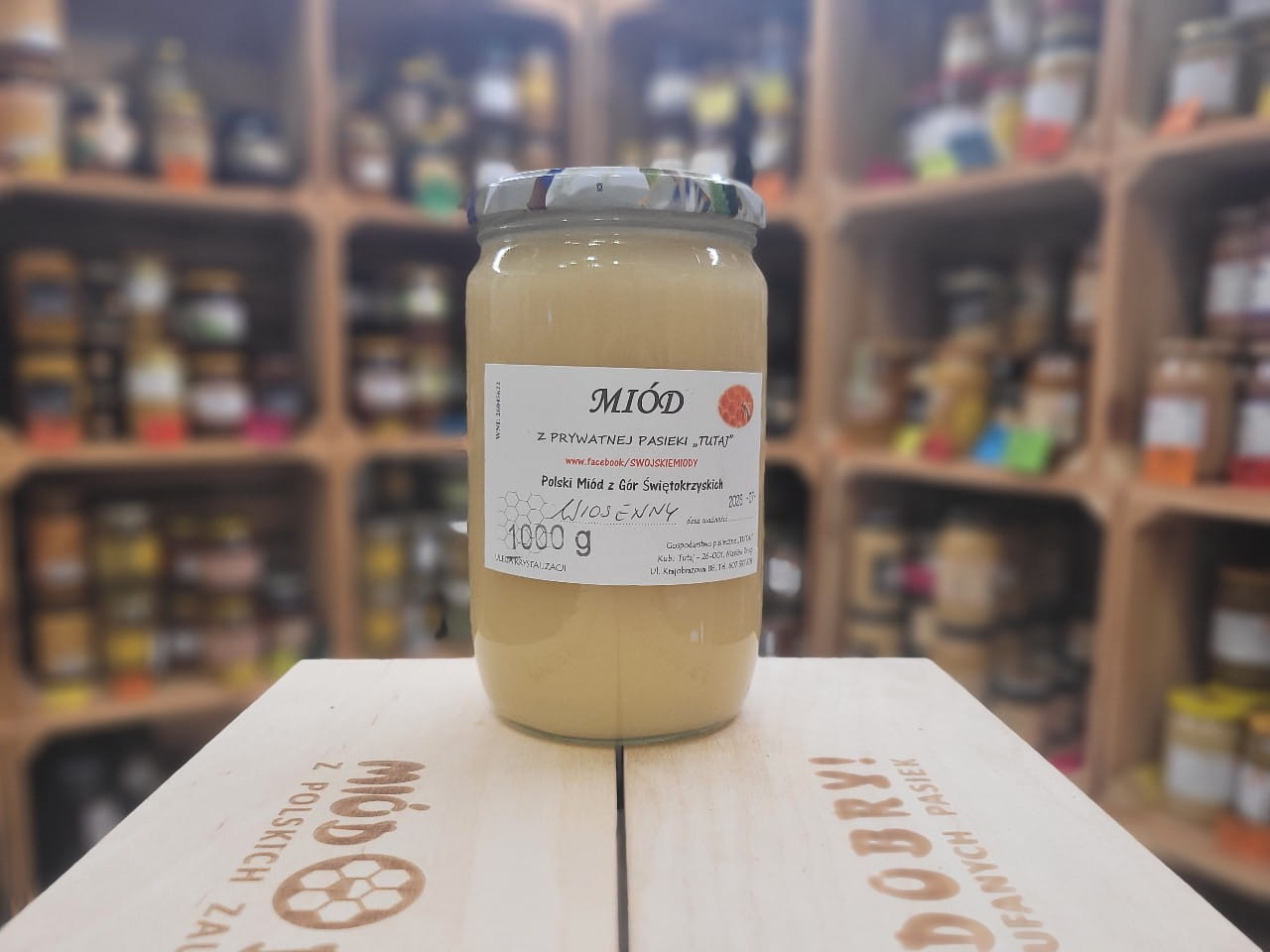 Surowy Delikatny Miód Wiosenny Wielokwiatowy z Gór Świętokrzyskich 1000g