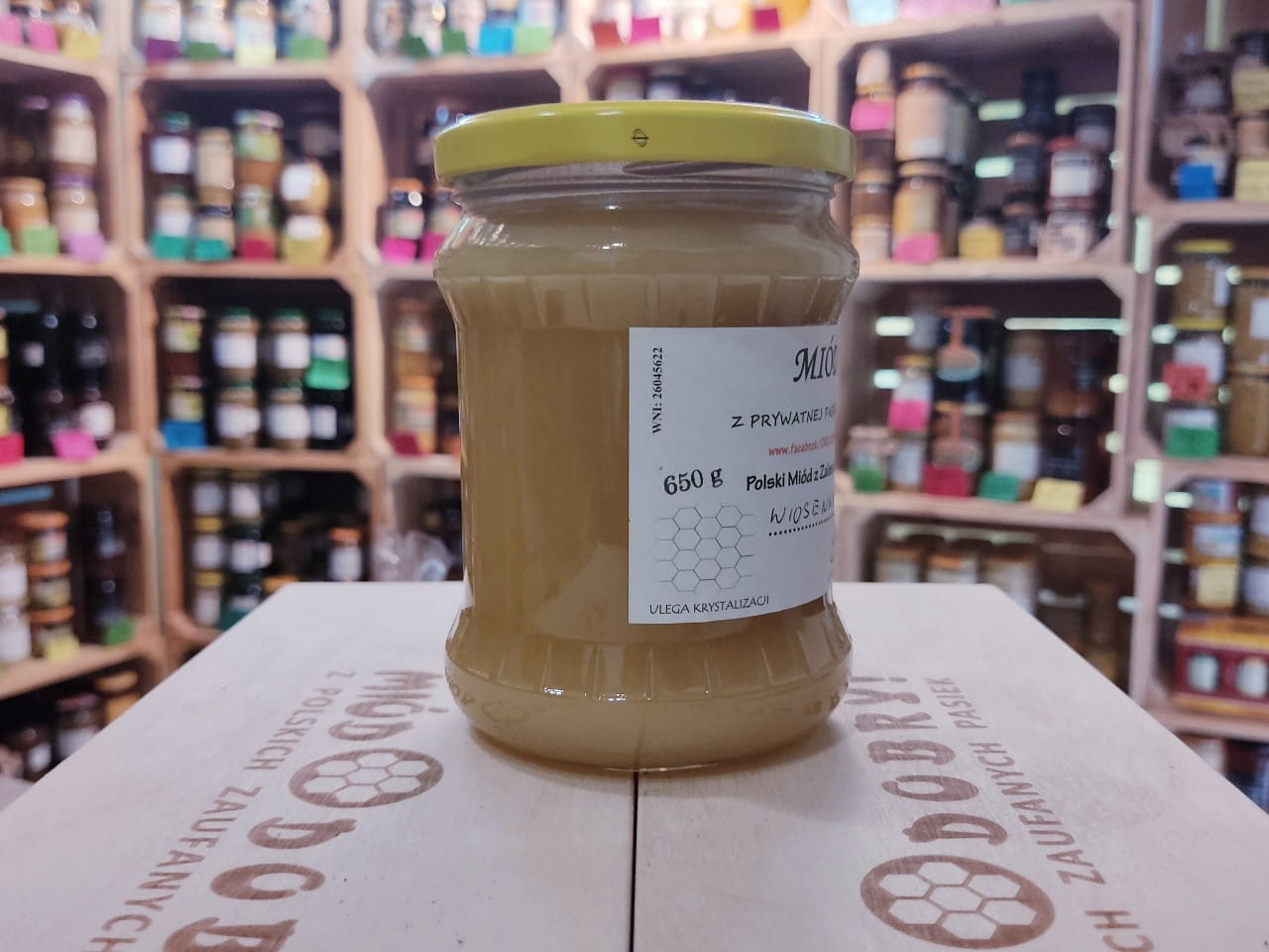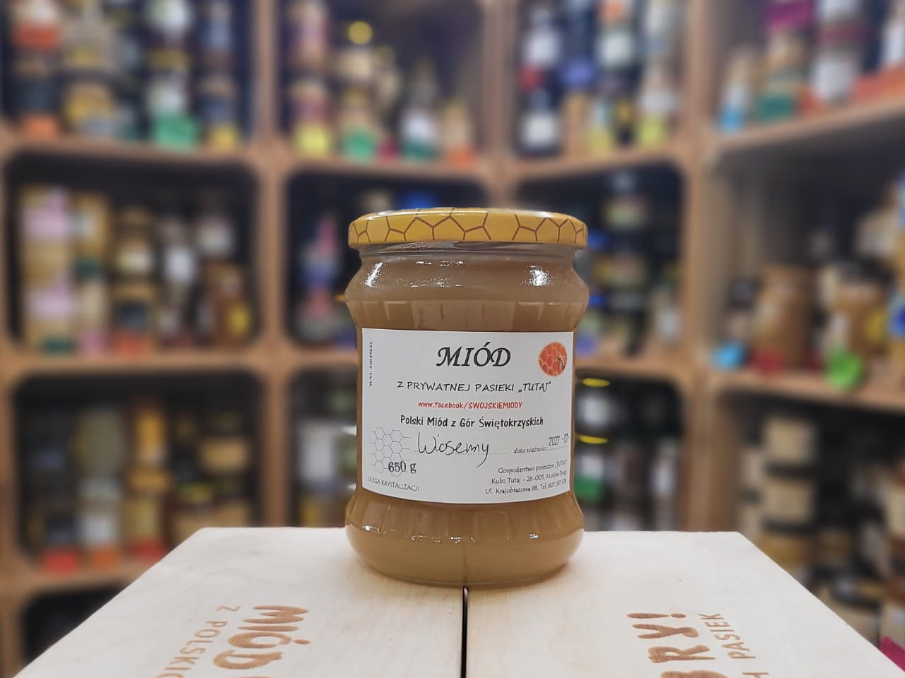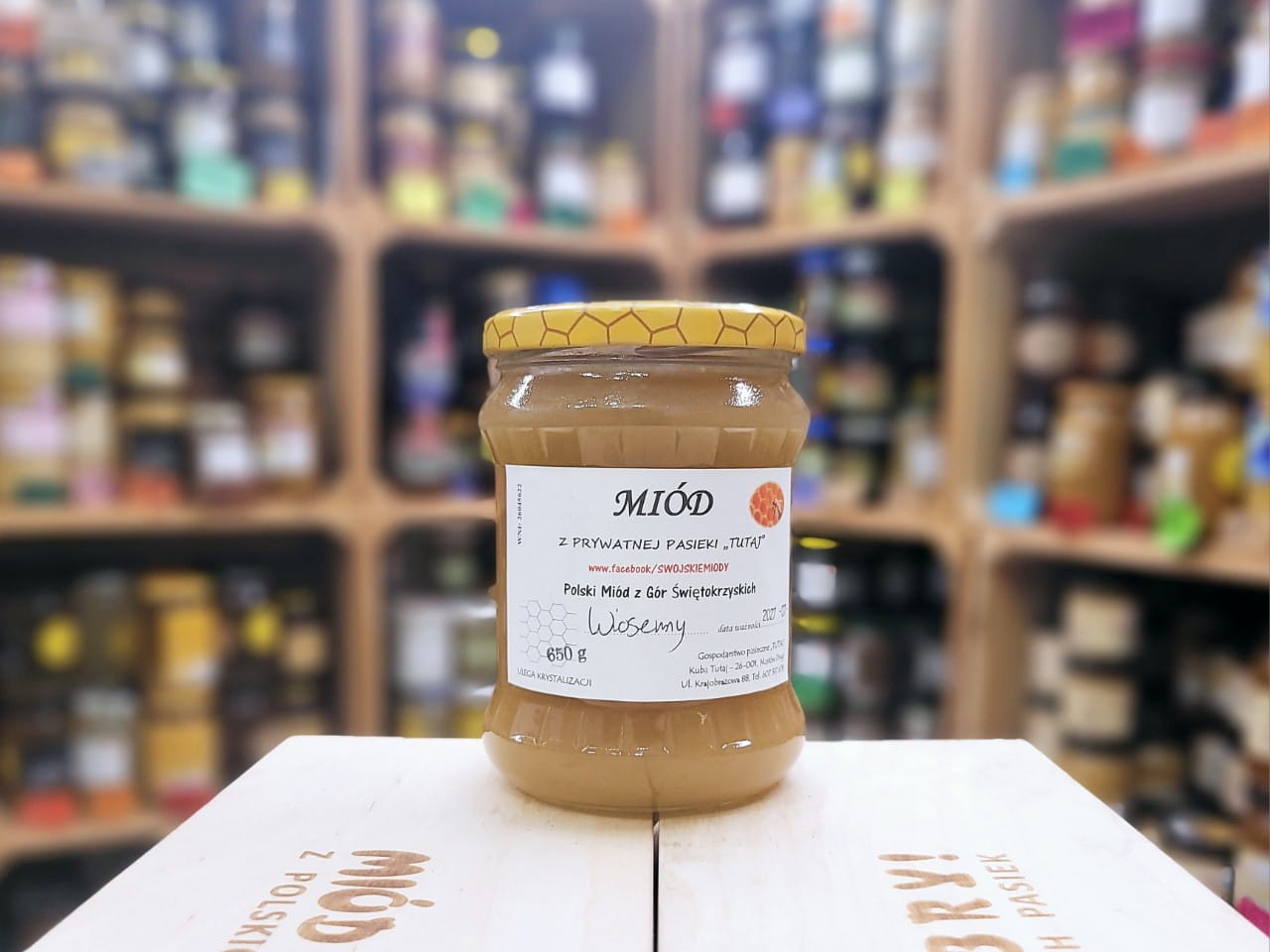 Surowy Delikatny Miód Wielokwiatowy Wiosenny z Gór Świętokrzyskich 650g (z pierwszego rozlania)