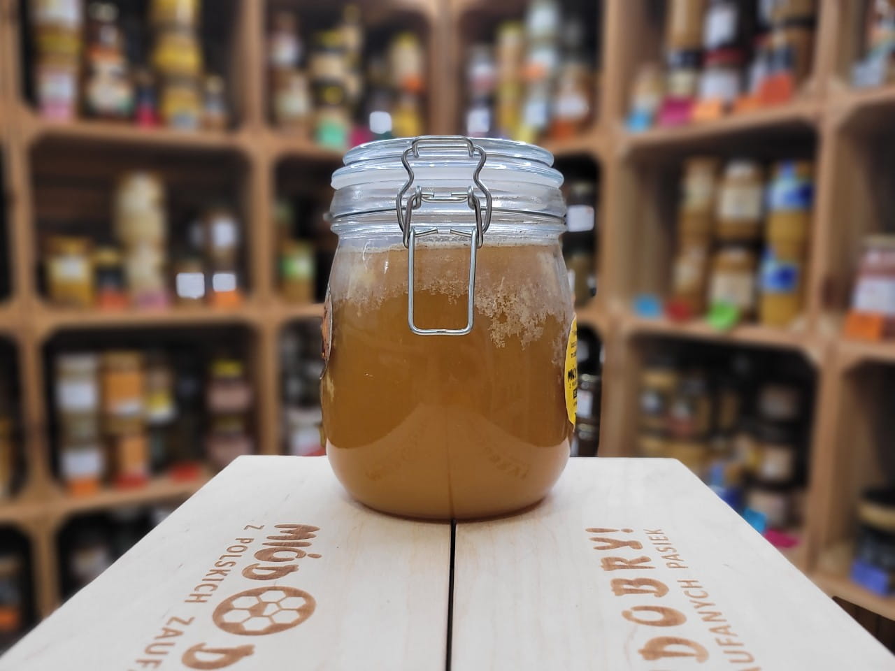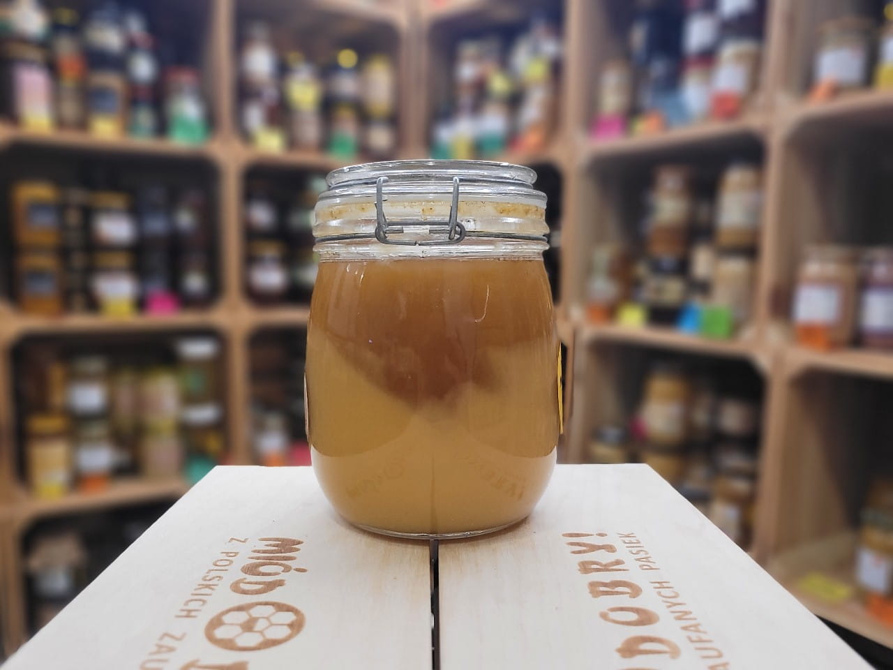 Uwaga #1: Aktualnie mamy miód wybrany z barci w kwietniu 2026. Czyli przeleżał w plastrach w barciach przez zimę (a ponieważ te pszczoły nie są nawet na zimę dokarmiane cukrem, to można mieć o tej porze roku taki miód). W związku z tym charakteryzuje się on naturalnie większą wilgotnością i jest rzadszy. Warto trzymać go (jeśli dłużej) w lodówce. Bartnik taki miód zachwala. (Długie leżakowanie w plastrach pozwala na pełne zajście procesów biochemicznych. Enzymy dodawane przez pszczoły mają więcej czasu na działanie, co może podnieść liczbę diastazową, tj. wskaźnik aktywności biologicznej miodu).