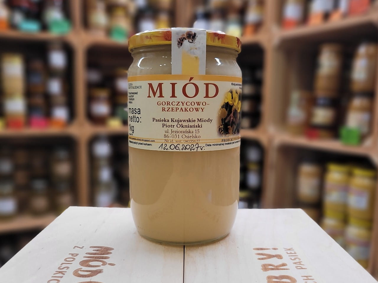 Surowy Miód Gorczycowo-Rzepakowy z Kujaw 1000g