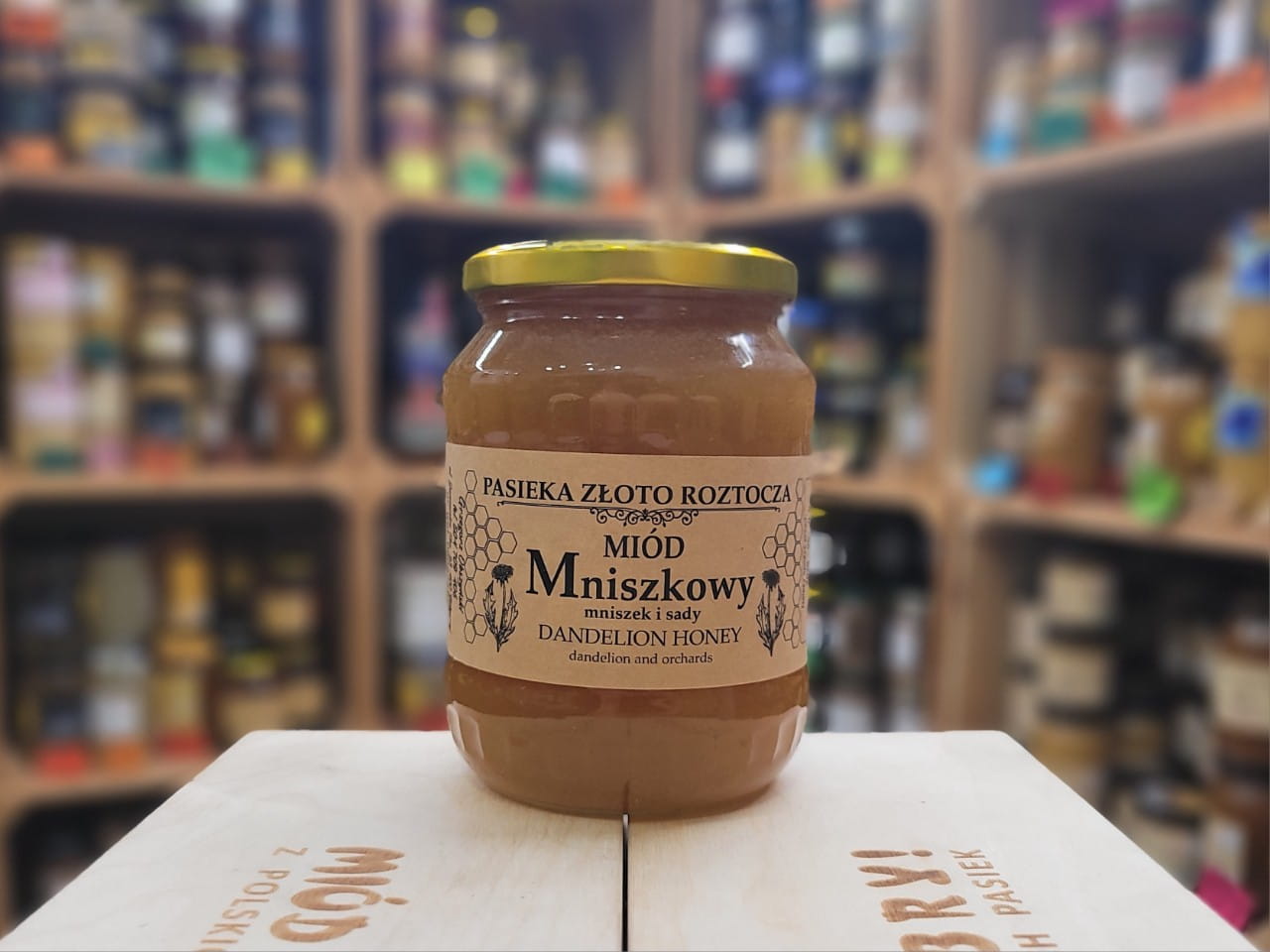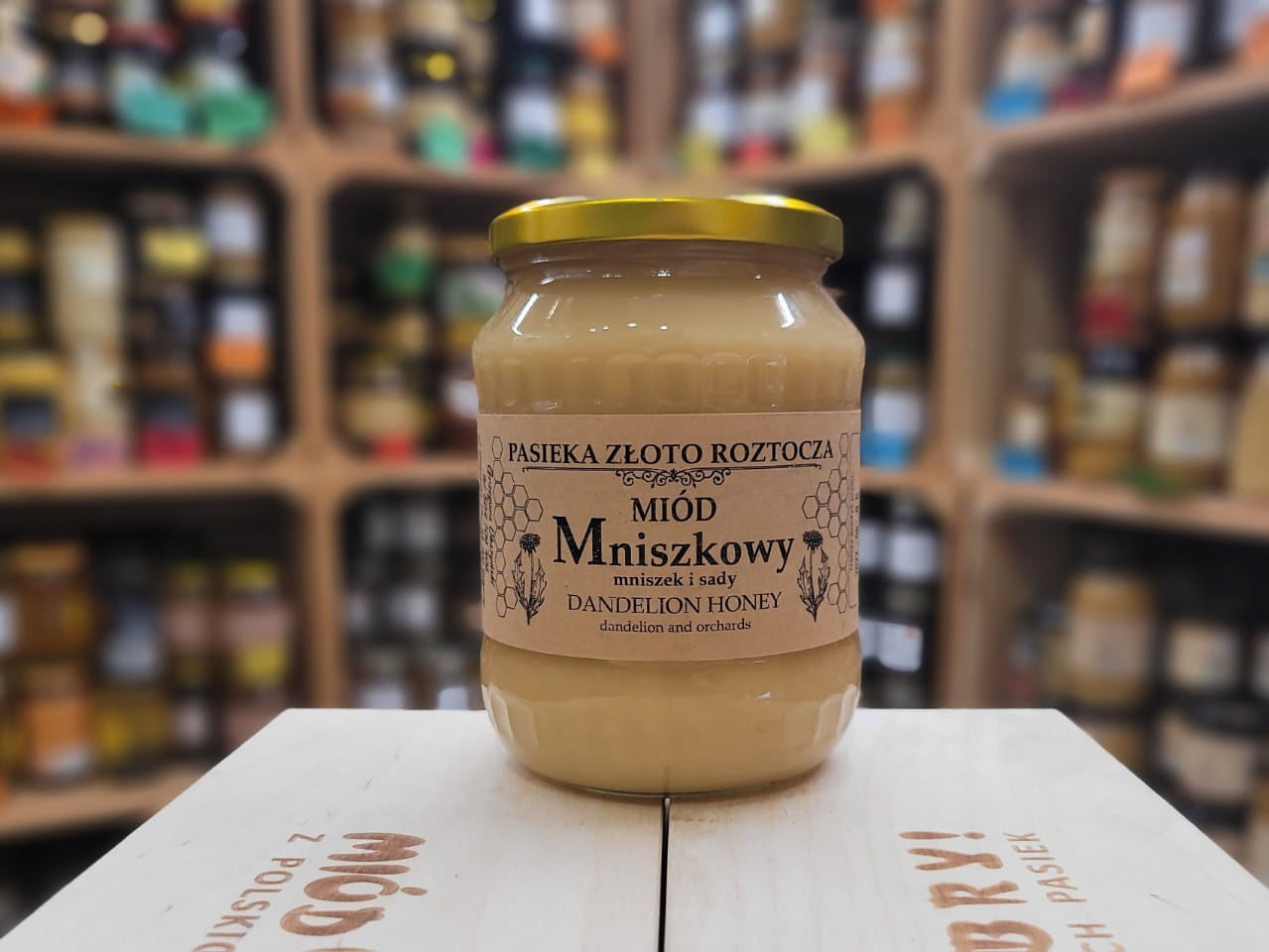 Druga partia tego miodu - już bez domieszki spadzi ze śliwy, normalny miód mniszkowy. Można powiedzieć: też rarytas. Bo w tej pasiece mniszkowy wychodzi raz na parę lat. W 2023 roku nie ma go w ogóle. Zostało nam kilkanaście słoików z 2022 roku.