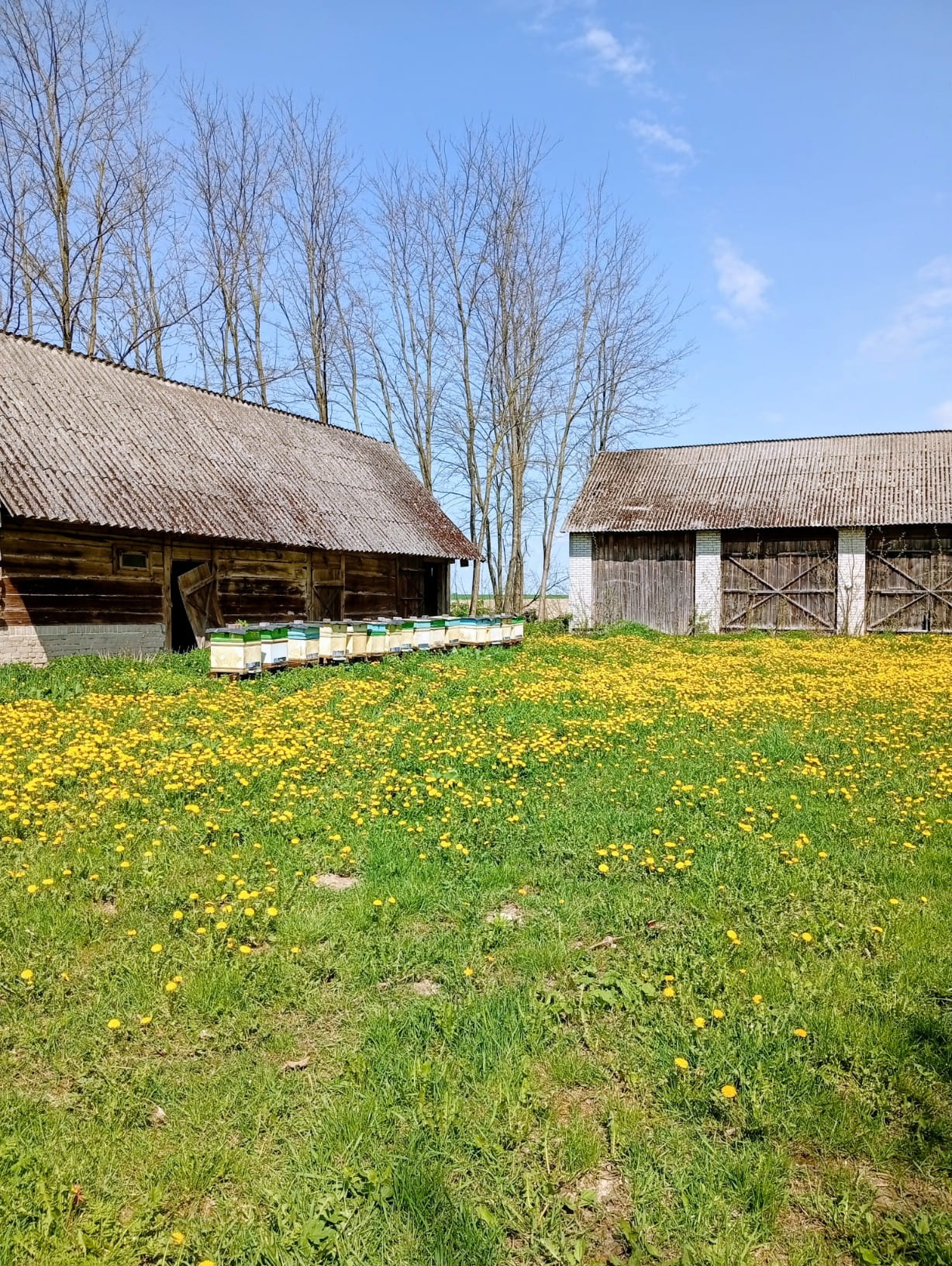 W 2025 roku miód jest, ale ani czysty mniszek, ani jakoś specjalnie ciekawy, jak ostatnio. Jest domieszka nektaru z sadów (śliwy i grusze), ale bez spadzi ze śliw, która kiedyś się trafiła i nadawała temu miodowi ostrzejszą nutkę. Zresztą zbiór mały.