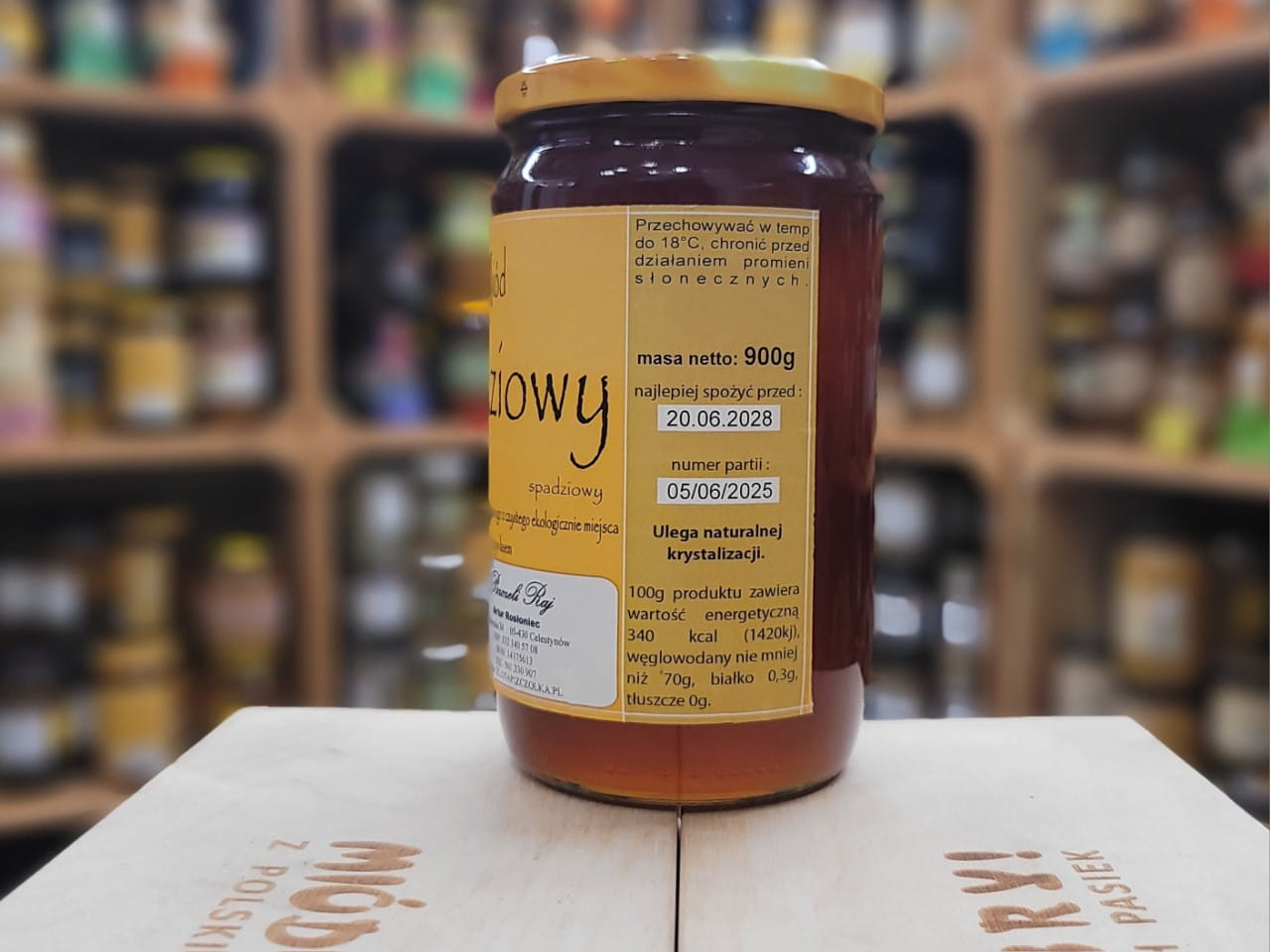 Surowy Miód Spadziowy Liściasty z Mazowieckiego Parku Krajobrazowego 900g (nigdy niepodgrzewany) przewodność 0,95